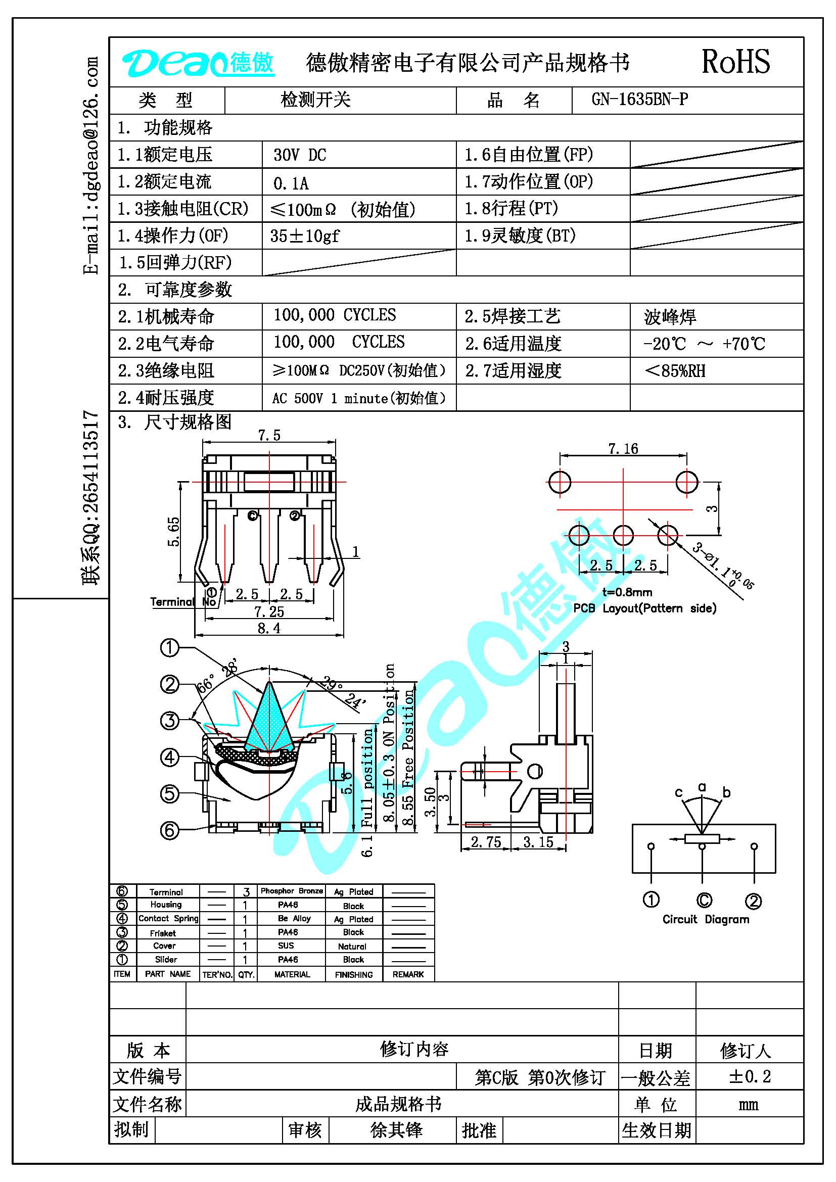 機械壽命:≥10000次