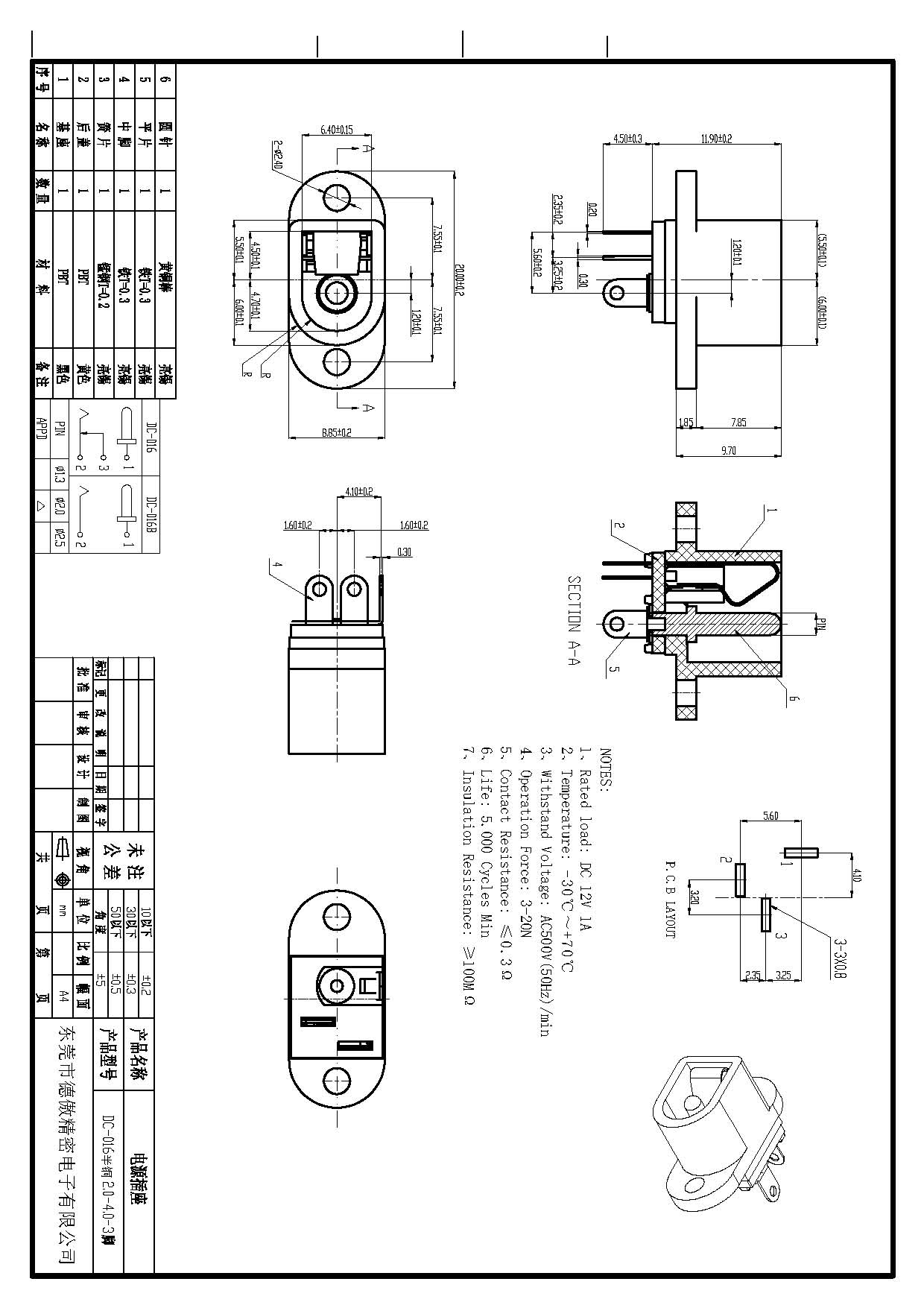 機械壽命:≥5000次